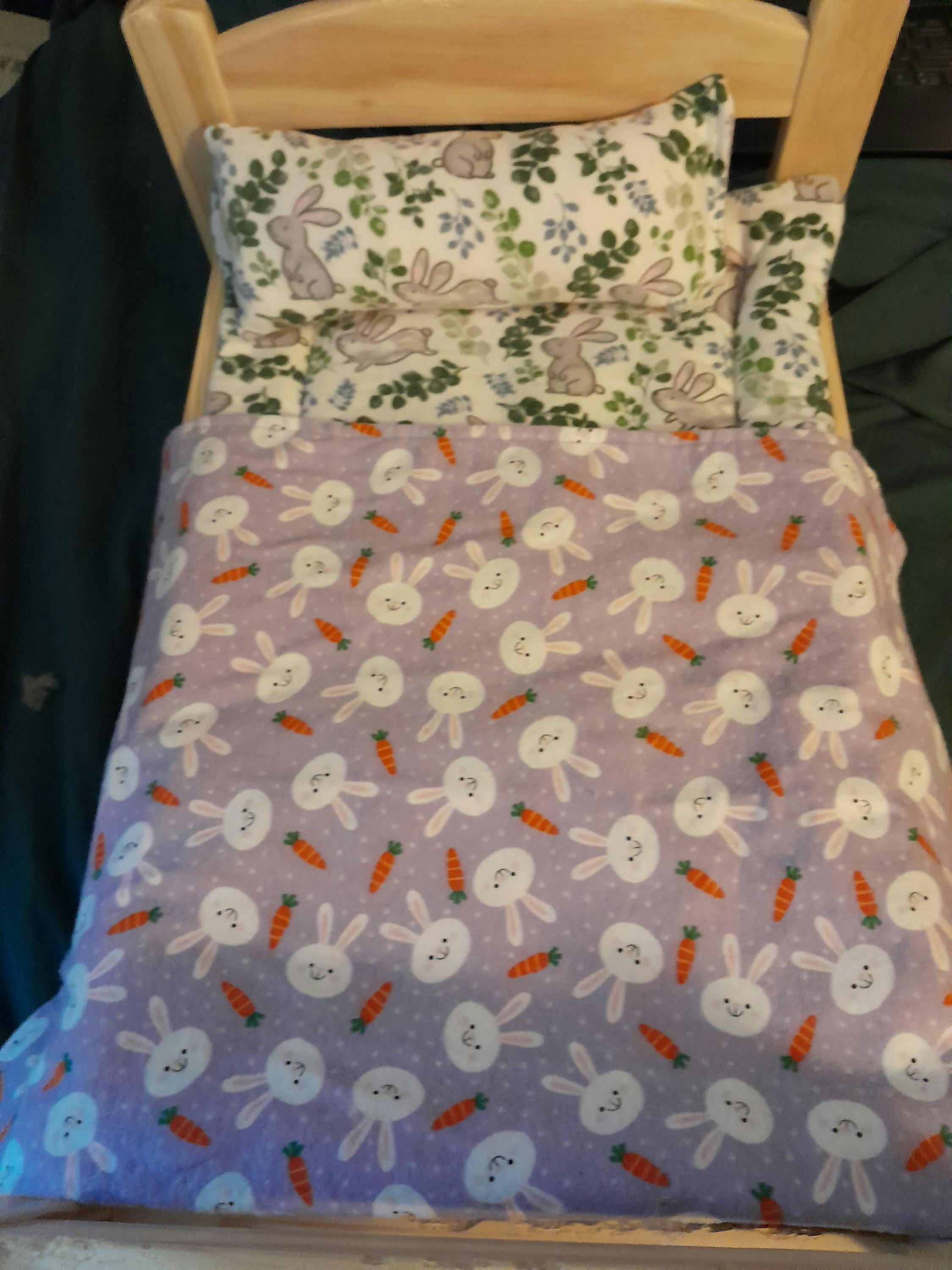 Have you purchased a wooden bed for your bunny but are concerned about their feet or that they will eat the synthetic polyester bedding that it came with, or wanted a set to match your color scheme or decor? My bun Lychee and I handmake 100% cotton bunny safe reversible bedding sets for common wood beds that many bunny owners have.